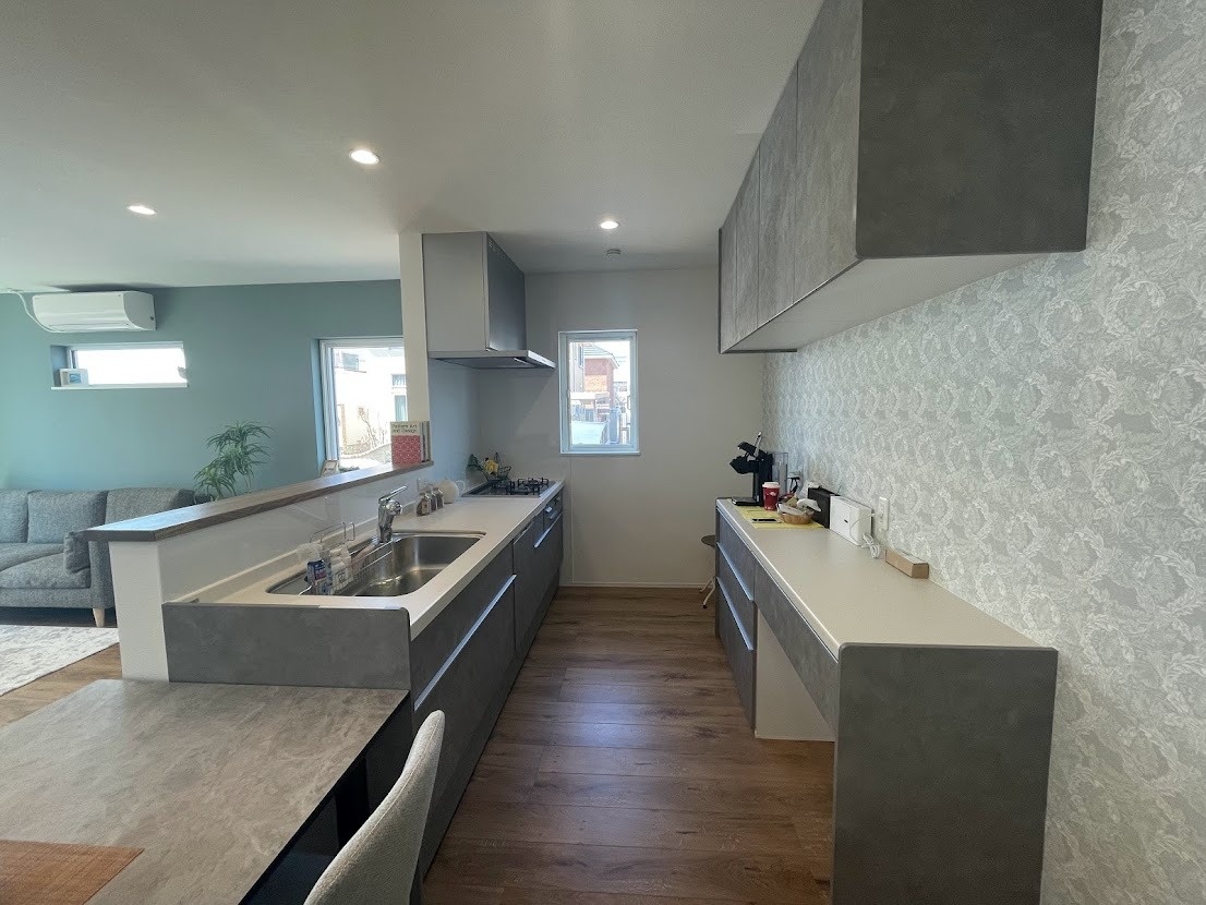 使いやすくシックな印象のキッチン。クロス使いにも注目!