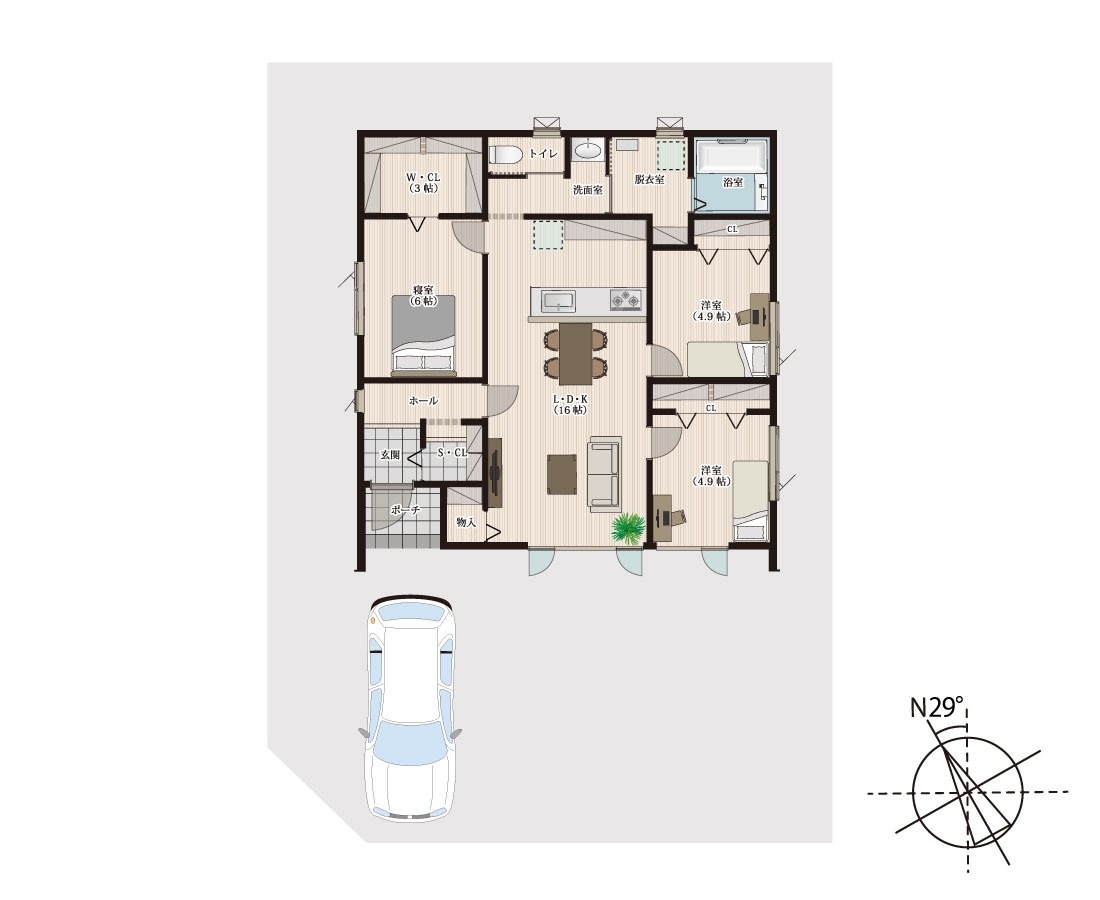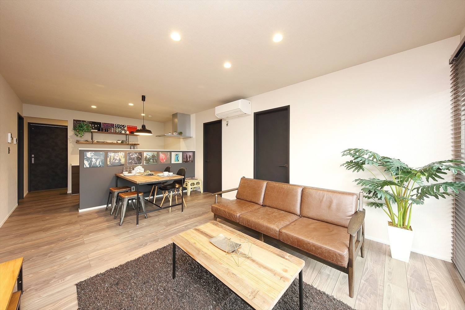 すべての部屋の距離が近い、横につながる平屋での暮らし。どこに行くにもまずリビングを通るので、必然的に家族の距離も縮まります。