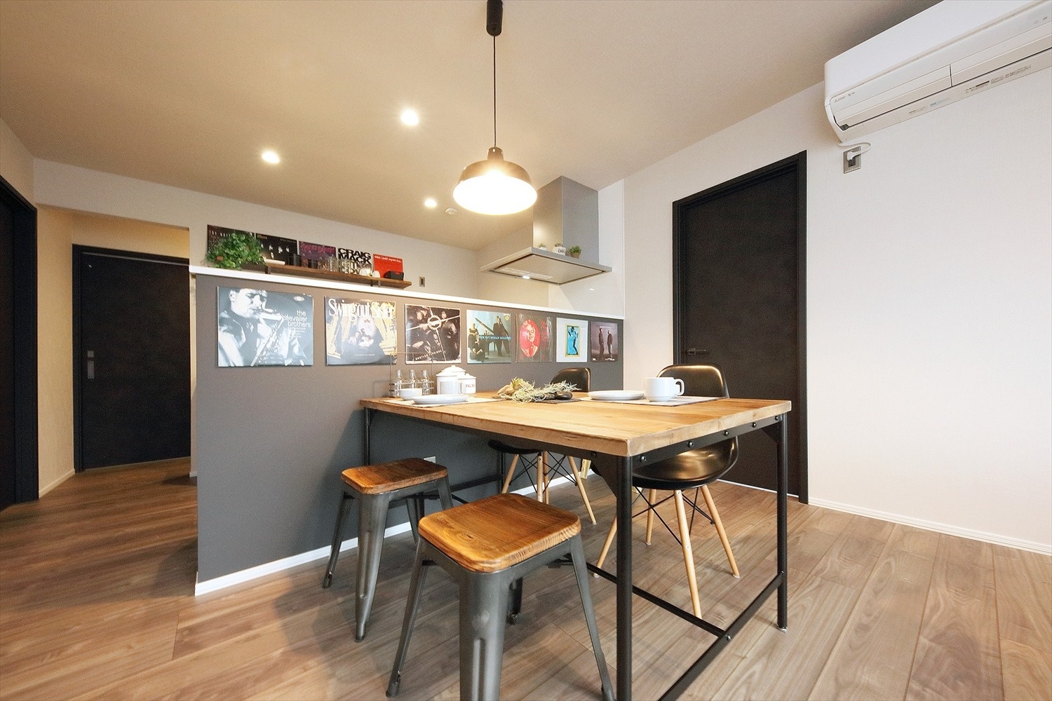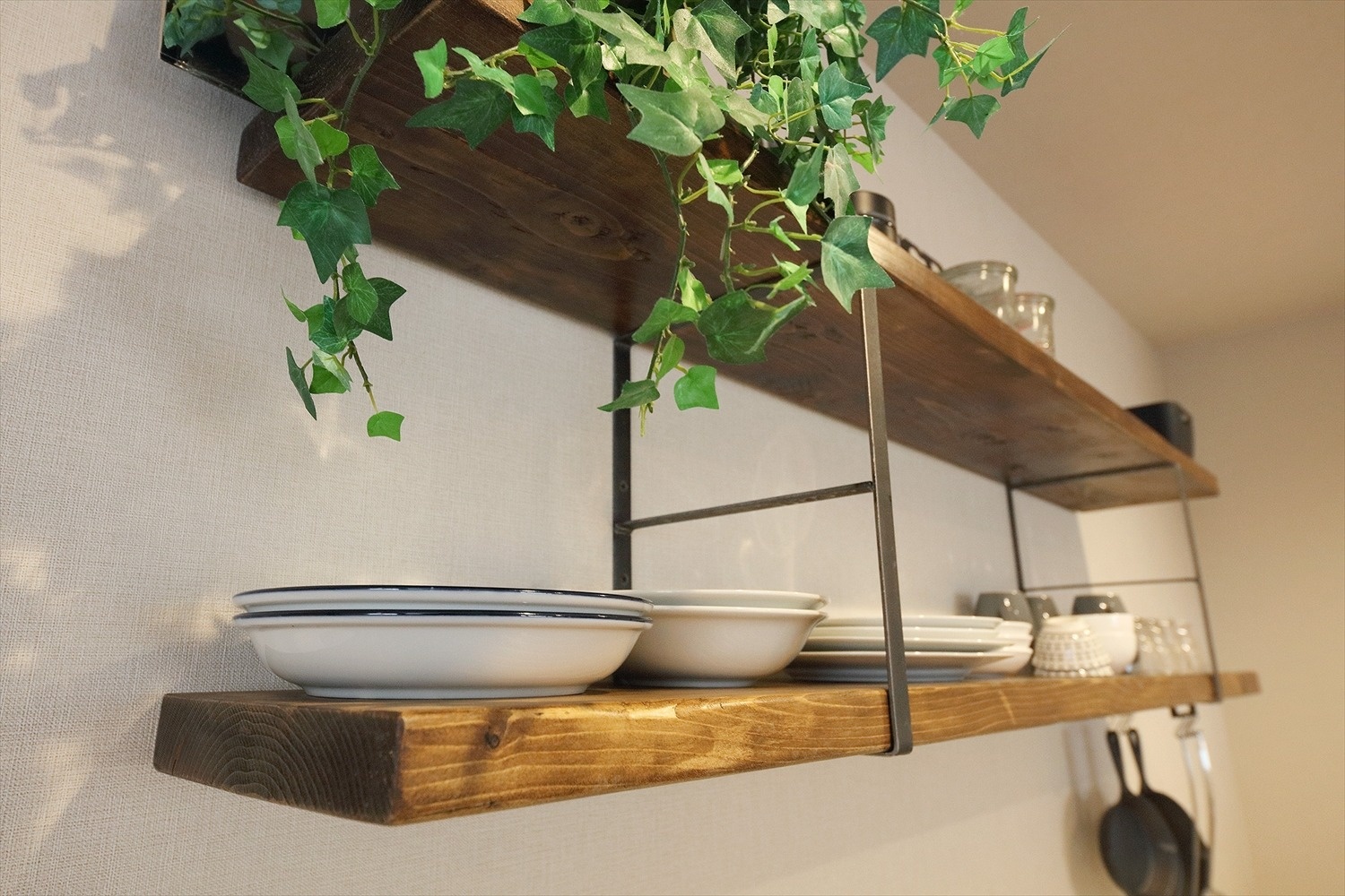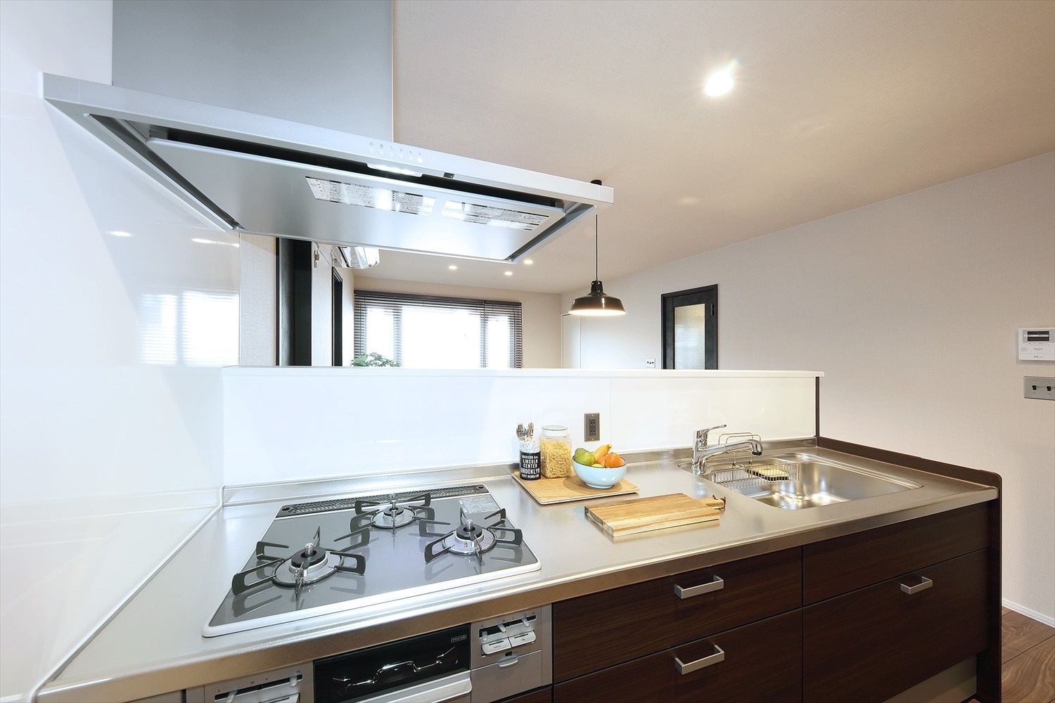 キッチンの背面収納は圧迫感を感じないOPENな作りに